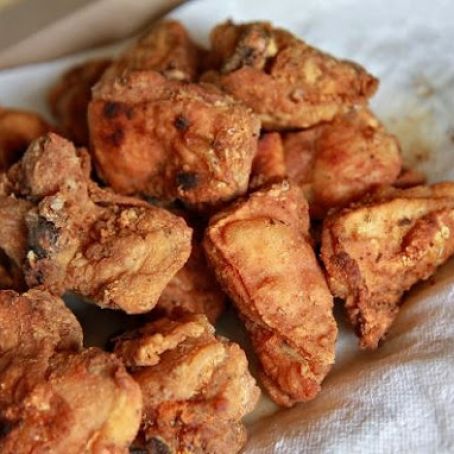 NOTE: Could you fry it without chopping it into chunks? Yes but it does take longer to cook. The goal with this chicken is when you fry it you get a crispness close to crispy pork rinds. I do not recommend using boneless chicken because the bone is what makes the meat juicy and tender. Removing the bone can cause your chicken to dry out. Finally don’t skimp on the 3 time fry! It is essential to getting that perfect crisp to the skin.