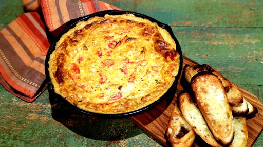 Transfer to two 6-inch cast iron skillets. Bake for 15 to 18 minutes, or until golden brown on top. Remove from oven and allow to cool slightly before serving with toasted bread.