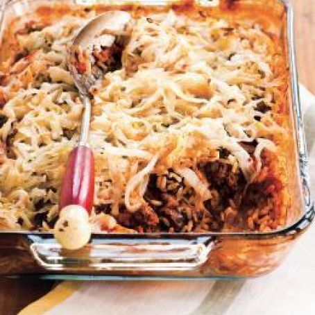 Layers of seasoned ground beef, rice, tomatoes, cabbage and broth are baked to perfection in this lasagna styled dish. Easy on the wallet, easy to prepare and delicious!