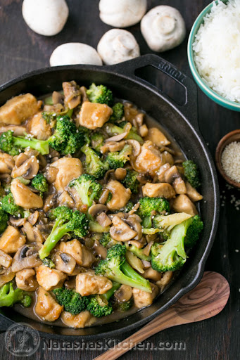 Stir the sauce again then pour it your hot vegetables. Bring to a boil over medium heat, stirring constantly. Simmer 2 minutes or until sauce is thickened then toss in chicken and cook another 30 seconds or until heated through. Season to taste with salt if needed and serve over hot rice.
