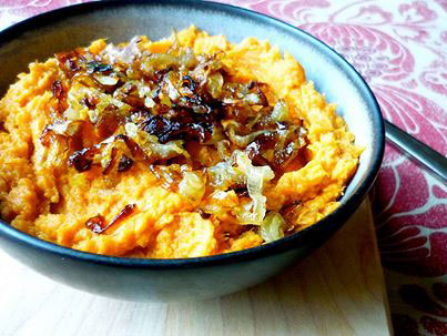 - 2 1/2 lbs sweet potatoes, peeled and cut into 1″ chunks