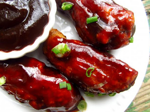 1 Combine the sauce ingredients in a small saucepan over medium heat. Stir until ingredients are well-combined and bring to a boil. 2 Then reduce heat and simmer uncovered for 15-20 minutes. 3 As sauce is simmering, heat up 6 to 8 cups of oil in a deep fryer set to 350 degrees. 4 Combine the beaten egg with the milk in a small bowl. 5 In another small bowl, combine the flour, salt, pepper and MSG. 6 When oil is hot, dip each wing first in the flour mixture, then into the milk and egg mixture, and back into the flour. 7 Arrange wings on a plate until each one is breaded. 8 Fry the wings in the oil for 9-12 minutes or until light, golden brown. 9 If you have a small fryer, you may wish to fry 10 of the wings at a time. Drain on paper towels or a rack. 10 When the sauce is done, brush the entire surface of each wing with a light coating of sauce. Serve immediately.