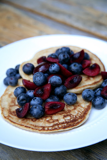 5. Make eight pancakes, and serve with fresh fruit or maple syrup.