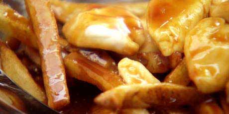 In a deep fryer set to 250°F, blanch the fries for about 2 minutes. Let them rest for about 5 minutes. Then, fry them again for about 2 minutes or until golden brown. Place on a tray lined with paper towel to absorb excess oil. Salt and pepper. Remove sauce from the stovetop and strain. Plate fries in a shallow bowl, pour sauce on top and garnish with cheese curds.