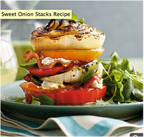 5. Toss greens with 3 Tbsp. vinaigrette, and serve immediately with Sweet Onion Stacks and remaining vinaigrette.