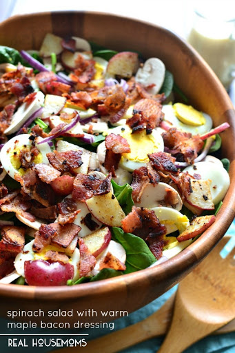 SPINACH SALAD WITH WARM MAPLE BACON DRESSING