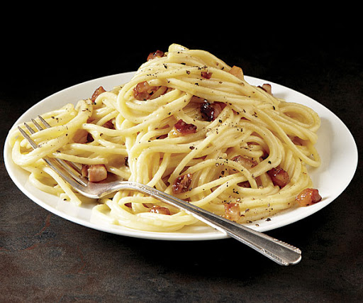A great carbonara is about balancing the cheese, eggs, pork, and pasta. Because there are so few ingredients, it’s important that they be high quality to make this dish a stunner. The secret is tossing beaten eggs with hot pasta off the heat so that the eggs thicken into a velvety sauce without scrambling. Eat the pasta very hot, while the sauce is still smooth and creamy.