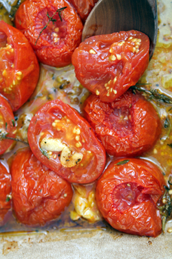 Stewed tomatoes are boring. But roasted tomatoes make a brilliant side dish for roast chicken and roasted white fish like cod, adding an intense hit of flavor and juiciness.