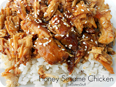 Season both sides of chicken with lightly with salt and pepper, put into crock pot. In a small bowl, combine honey, soy sauce, onion, ketchup, oil, garlic and pepper flakes. Pour over chicken. Cook on low for 3-4 hours or on high 1 1/2 – 2 1/2 hours, or just until chicken is cooked through. Remove chicken from crock pot, leave sauce. Dissolve 4 teaspoons of cornstarch in 6 tablespoons of water and pour into crock pot. Stir to combine with sauce. Replace lid and cook sauce on high for ten more minutes or until slightly thickened. Cut chicken into bite size pieces, then return to pot and toss with sauce before serving. Sprinkle with sesame seeds and serve over rice or noodles.
