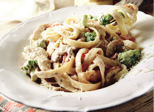 FETTUCCINE ALFREDO WITH CHICKEN AND VEGETABLES