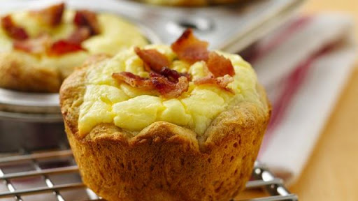 4. Bake 21 to 26 minutes or until filling is set and edges of biscuit cups are golden brown. Sprinkle each with remaining bacon; lightly press into filling. Remove biscuit cups from pan.