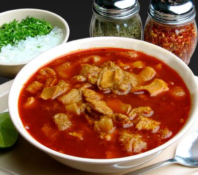 Sirve bien caliente y lleva a la mesa junto con la cebolla picada, el chile verde picado o en polvo, el orégano y el limón, para que cada comensal sazone a su gusto.