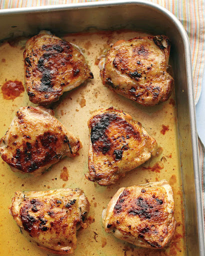 Heat Ninja to oven 425 degrees. Rub chicken thighs with seasonings on both sides. Place in Ninja and drizzle with avocado oil. Brown on one side, turn, and add broccoli on top. Brown remaining side. Roast at 425 until well brown and then turn to slow cooker.