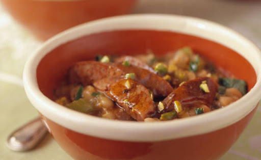 Marrow Beans with Merguez, Pistachio and Honey