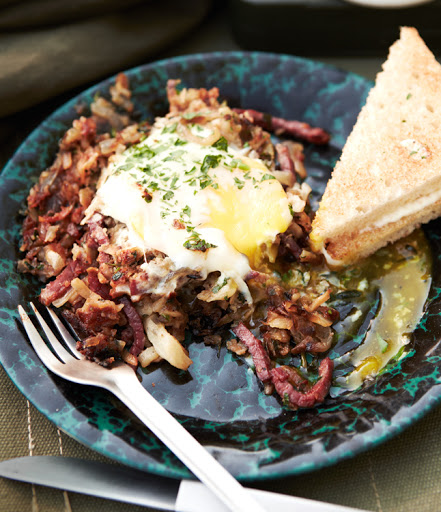 For a hash with plenty of crisp texture, cook it over moderately high heat, scraping and folding in the browned bits from the bottom of the pan as it cooks.