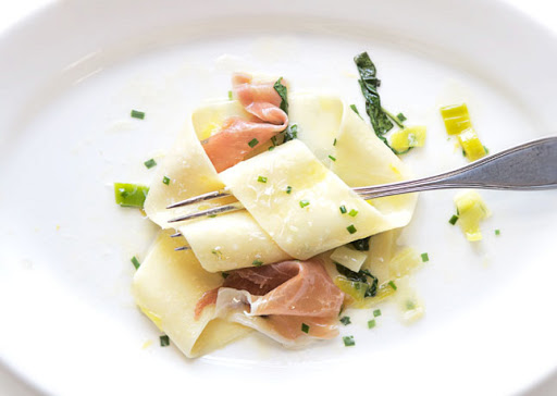 Add the prosciutto at the last minute to preserve the pretty pink color.