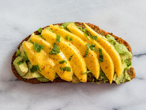 AVOCADO TOAST - Avocado Toast With Mango, Chili Powder, and Mint