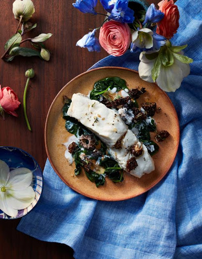 To serve, distribute spinach and mushrooms among 4 plates. Nestle steamed fish fillets over spinach and spoon buttermilk sauce over top. Serve immediately.