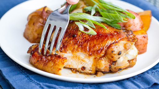 Preheat oven to 400˚F/200˚C. Season chicken thighs with salt and pepper, to taste.