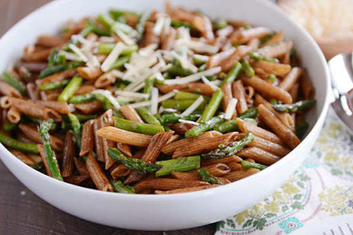 Add the vinegar reduction. Toss to combine well. Add the asparagus and Parmesan; toss. Season to taste with additional salt and pepper, if needed.