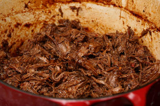 Dejar cocinar 8 horas a temperatura baja o 4 horas a temperatura alta. Una vez pasado el tiempo retiran de la olla y con 2 tenedores deshebrar la carne.