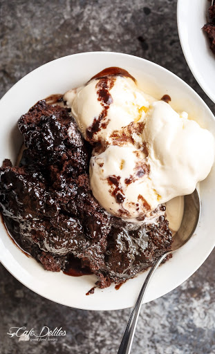 Serve in dessert dishes with ice cream or whipped cream, and spoon fudge sauce from the bottom of pan over top of each serve of cake.