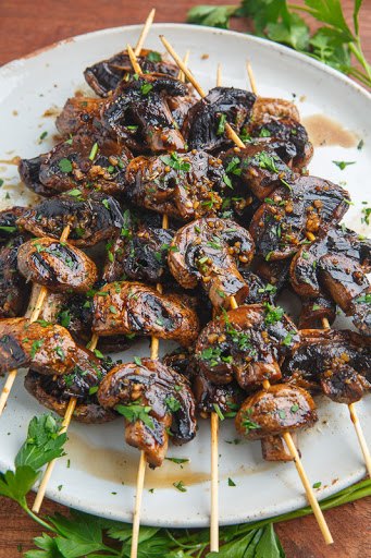Balsamic Garlic Grilled Mushroom Skewers