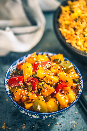 - Mixed coloured bell peppers - 1 cup ( cubed )