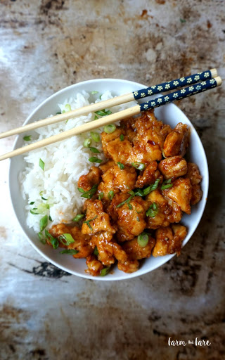 3. In a frying pan heat cooking oil to medium/hight heat. Cook chicken in 2-3 additions making sure not to over crowd the pan, after about 3 min each side remove to paper towel lined plate. Once all chicken is cooked add sauce, toss together till chicken is thoroughly coated with sauce and warm. Serve with cauliflower rice and crab rangoons with a sprinkle of chopped green onions.