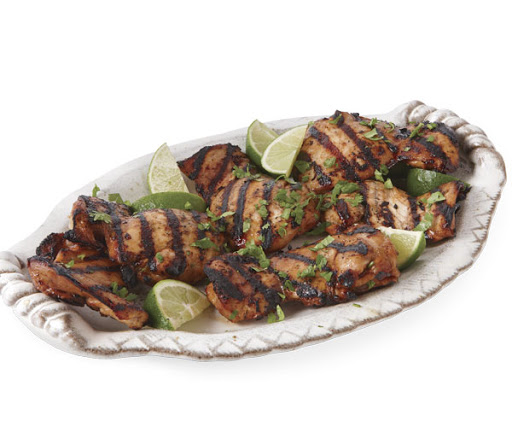 Remove the chicken from the grill, cover with foil, and let rest for 5 minutes. Squeeze half a lime over the chicken, garnish with the cilantro, and serve with the remaining lime, cut into wedges.