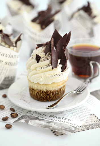 Garnish: Sprinkle each cupcake with cocoa powder and top with chocolate shards or shavings (see video for more info).