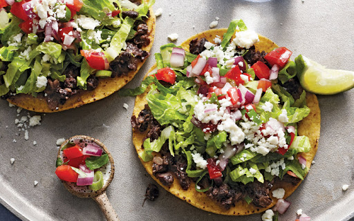Spread the bean mixture evenly on the tostada shells. Top each with 1/2 cup lettuce, 3 tablespoons pico de gallo, and 2 tablespoons cheese. Serve with lime wedges, if desired.