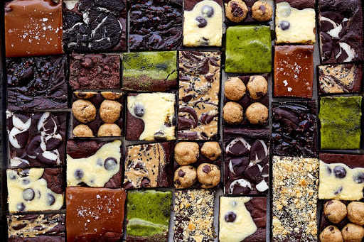 Tahini swirl: Make sure your tahini (use white and/or black) is well-blended. I'm a fan of turning on the blender or food processor to re-emulsify the tahini when it's got that clear, oily layer floating on a hard, chalky bottom. Then, blob it over the raw brownie batter in the pan and use a knife or a skewer to create a marble pattern. Finish with a sprinkle of black and white sesame seeds, then bake.