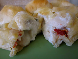 Place about 2 teaspoons of cream cheese mixture onto each square. Press edges together until sealed.