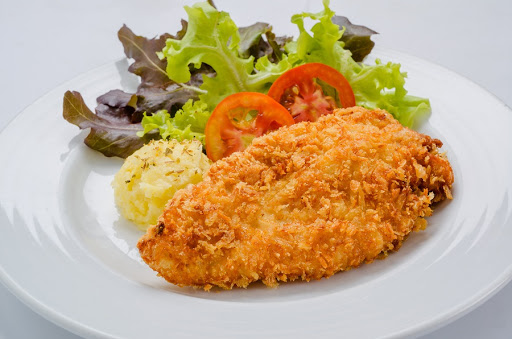 Place each coated chicken breast in the pan and put the remaining pieces of butter, over the top of chicken the breasts.