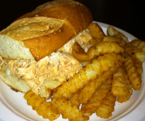 Toast rolls in oven, cut side up, until crisp. Spread cut side of rolls with some of the blue cheese mixture. Place lettuce on bottom half of roll, top with chicken pieces, season with pepper and cover with top roll portion. Serve warmed sauce for dipping.