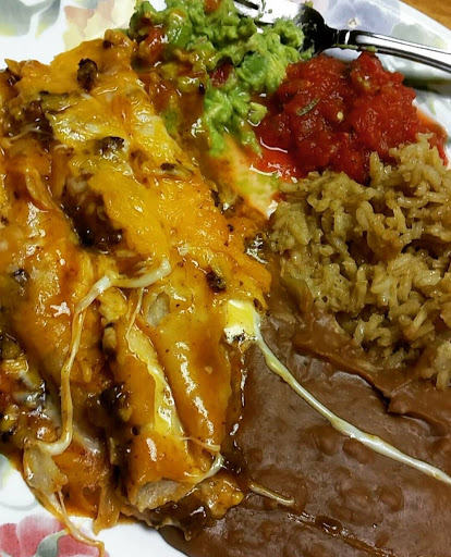 Cook the corn tortillas in oil to soften them. Cut 3/4 in slice from the end of the Velveeta block. Then cut that slice in to thirds. Repeat with Monterey Jack. Roll Velveeta & Monterey Jack in corn tortilla. In a casserole dish put a layer of sauce, then enchiladas, & more sauce. Add cheddar on top. Heat in oven until bubbly at 350.
