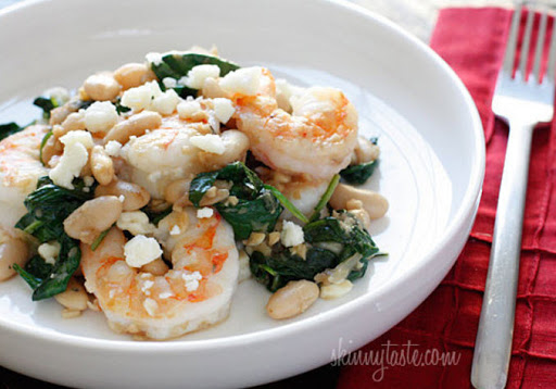Tuscan White Beans with Spinach, Shrimp, and Feta