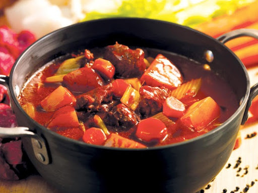 • 3 Pound beef chuck, cut into 1 1/2" cubes