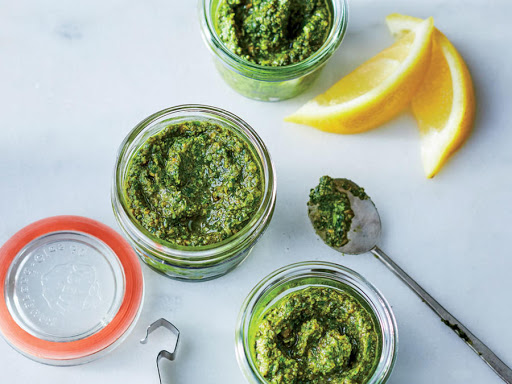 This approach makes pesto that's less grassy and intense than raw basil versions, with rounded, balanced flavor. It's good to use a mellow, mild olive oil here so it doesn't detract from the fresh herbs. We also prefer Parmigiano-Reggiano cheese in pesto because it’s milder than super-sharp sheep’s-milk pecorino romano. If you don't care for the hot taste of raw garlic, you can take the edge off the cloves by blanching them along with the basil. We use sunflower seed kernels here because they are far less expensive than the pine nuts traditionally used, and their flavor is similarly rich and sweet. If you have pine nuts already on hand, feel free to use them instead.