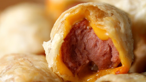 3. Place a slice of cheddar on top of each puff pastry piece.