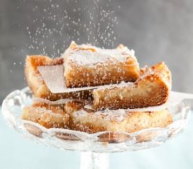 Next, add the powdered sugar and mix well. Spread over cake batter and bake for 40 to 50 minutes. Make sure not to over bake as the center should be a little gooey.