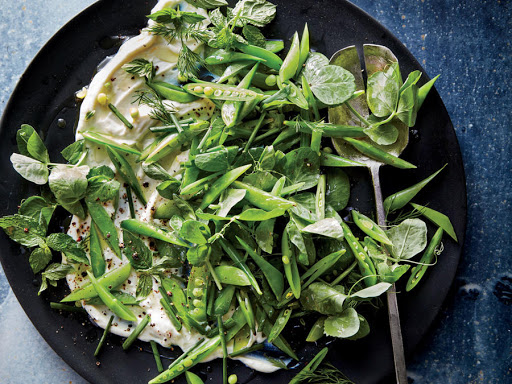A gorgeous tangle of crunchy peas, leafy pea tendrils, and fresh herbs cascades over a creamy mixture of ricotta cheese and lemon zest. It’s such a memorable salad that it will hold its own as the centerpiece of a meal. Serve alongside seared salmon fillets or sea scallops, grilled shrimp or chicken, or a slice of white pizza. Look for pea tendrils or shoots at your farmers market or Asian markets; if you can't find them, substitute watercress or arugula.