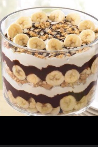 To assemble trifle place half of the crumbled graham crackers over the bottom of the trifle bow. Place half of the bananas over the crackers and top with one-third of the ganache. Spread half of the banana filing over the ganache. Sprinkle top of the trifle with chopped graham cracker. Arrange reserved bananas slices around the edges of the trifle.