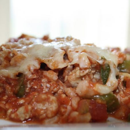 Add the cooked rice, pasta sauce, basil, oregano, salt and pepper to the beef in the skillet and mix well. Transfer the skillet ingredients to the prepared baking dish.