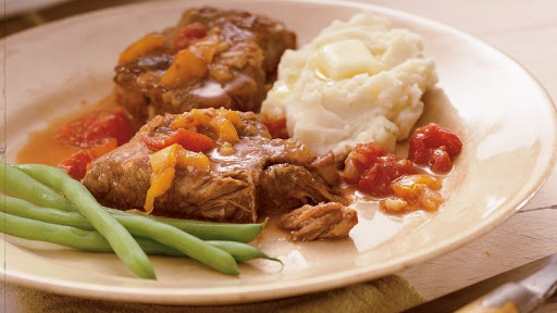 3 Add tomatoes and garlic to skillet, breaking up tomatoes with a fork. Heat to boiling; reduce heat. Cover and simmer about 1 hour 15 minutes, spooning sauce occasionally over beef, until beef is tender.