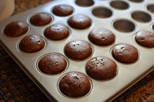 Remove mini brownies from the pan and let cool on a cooling rack.