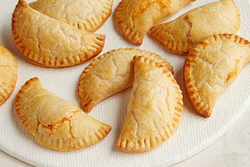 Spoon 1 Tbsp. chicken mixture onto center of each dough round; brush edge lightly with egg wash. Fold dough rounds in half; seal edges with fork. Brush tops with remaining egg wash.