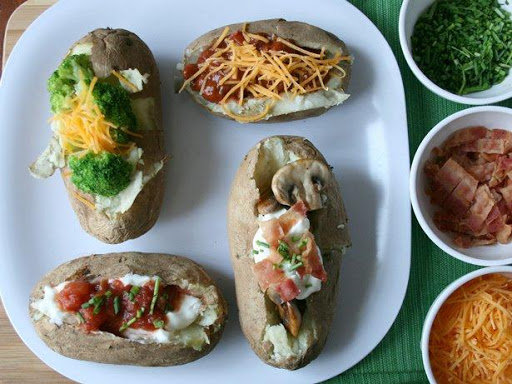Don't stop at the suggested baked potato toppings. Have fun trying a variety of vegetables, meats and beans.