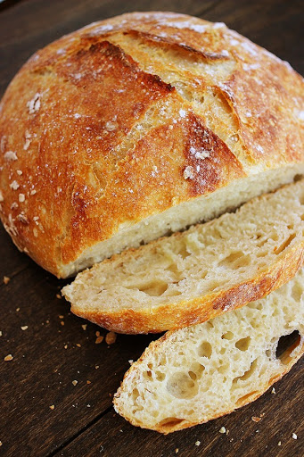 I used a 5.5 quart enameled cast iron Le Creuset pot, but you can use any large oven-safe dish and cover. All of these also work: a baking dish covered with aluminum foil, crockpot insert, stainless steel pot with a lid, pizza stone with an oven-safe bowl to cover the bread, and old cast iron Dutch oven.